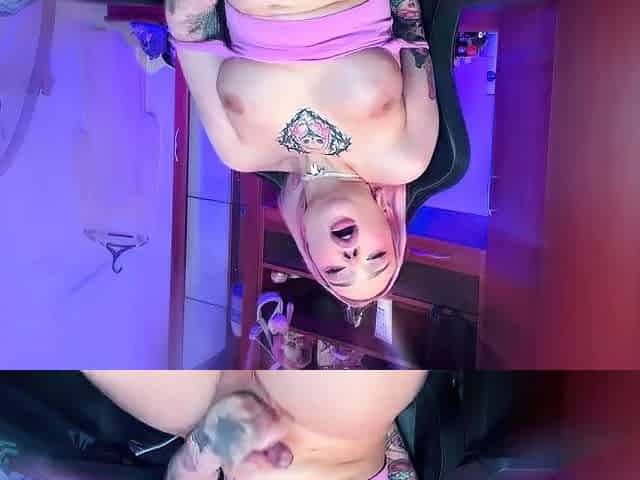 Tattood shemale tranny plays with ass during masturbation