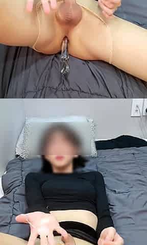 femboy playing with sex toy machine