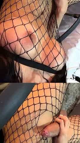 Michell Garcia Masturbates In Fishnet With Big Dick Close