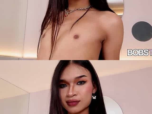 Asian teenie TS jerks on webcam