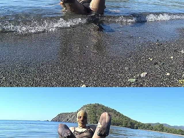 Wet Tulle Dress and Nylon on the Beach