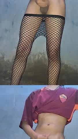 Hawt T-Girl In FIshnet Masturbating