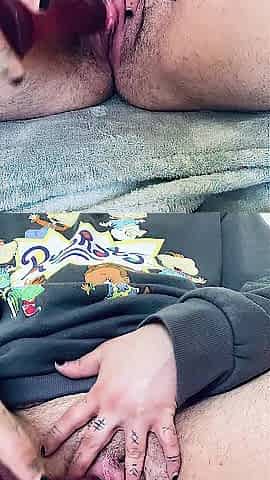 Ftm bangs hunk snatch with sex toy until that guy cums