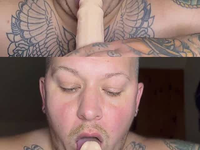 oral pleasure with 2 dildos at the same time, I finish and take my cum