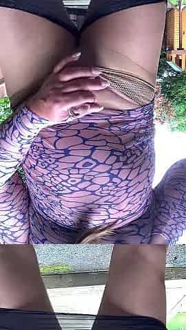Sissy Caroline has fun in public outdoors and cums