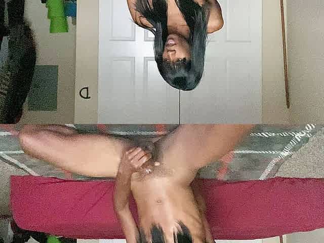 Black gay crossdresser jerking off his black cock while cumming & moaning