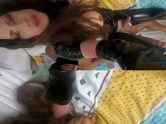 Long minet and creampie in black nylon lingerie - real evening sex of Mari Latexa and Simon Latexa