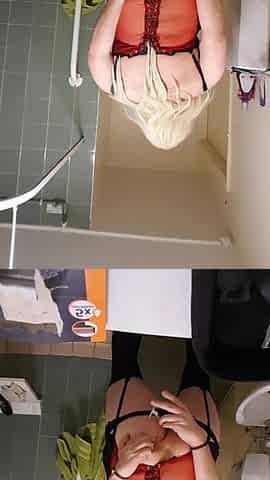 Crossdresser legs and feet in bath