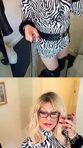 Crossdresser Secretary in uniform and boots