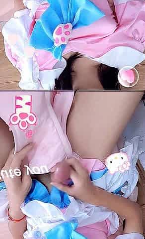 Cutie whose petite love button is played with by a machine????crossdresser masturbation