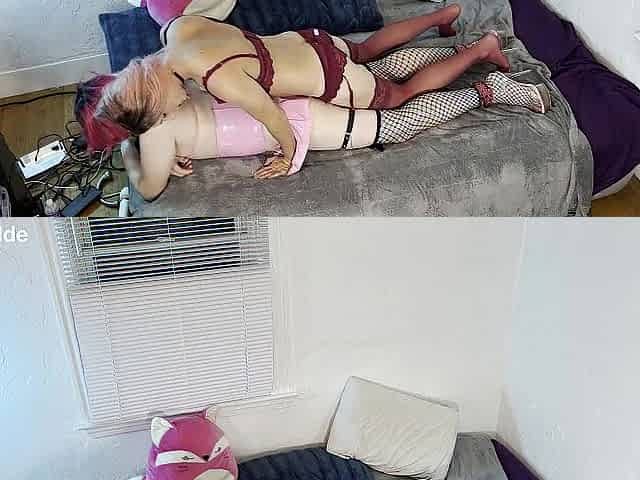 Tgirl Fucked by Sexy Crossdresser in Red Lingerie