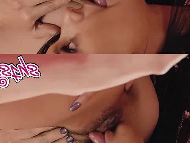 Lesbea Brunette hair nymphs doggy position snatch licking tribbing and orgasmic 69