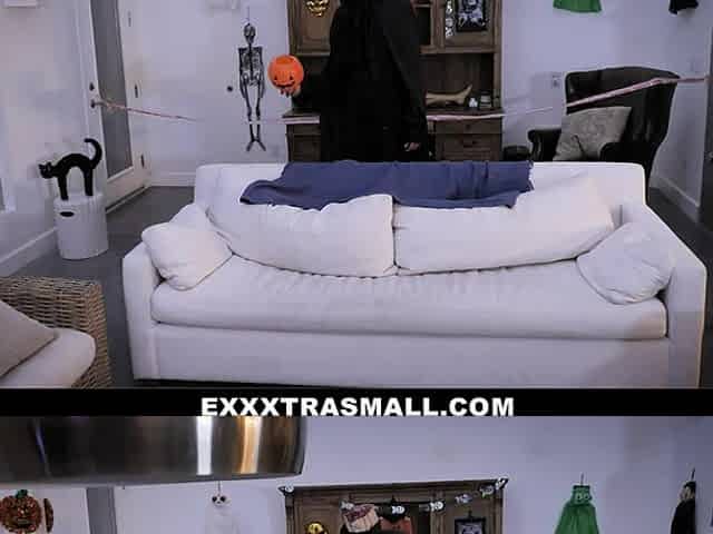 Helloween Trick Or Treat Fuck With My Hot StepSister And Her Friend.