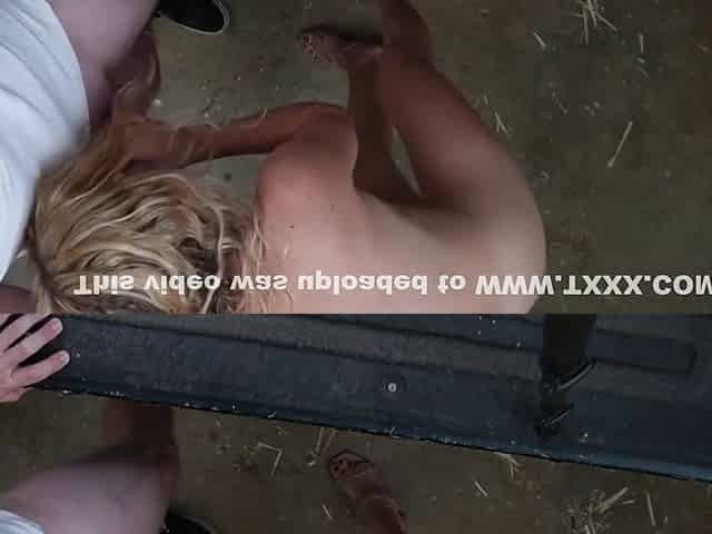Slutty Pair Pulls Over and Bangs in the Trunk of the Truck with the Back Door Wide Open