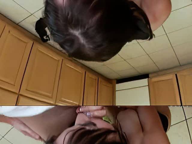 Pigtail Brunette Slut gives Her Man a Tug and a Suck