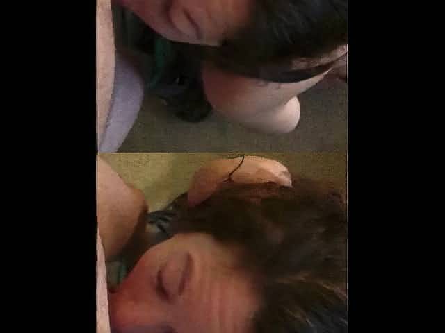 Baby girl sucks daddy while we watch tv leads to bareback sex cum on face and tits