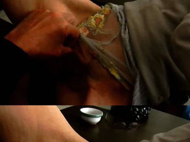 ugly skinny granny sucking on sofa legs spread close-up