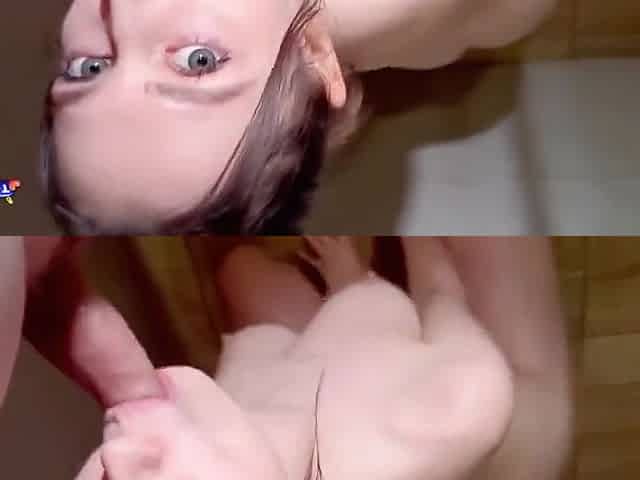 Golden-haired whore rims and sucks large jock to huge facial spunk fountain humiliation