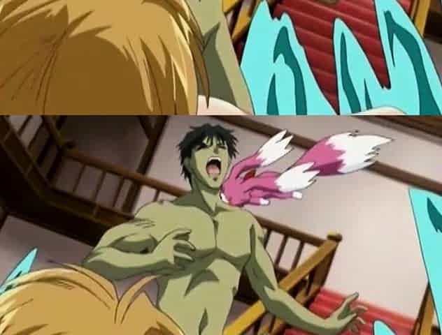 Hentai babe tries to hide under the table