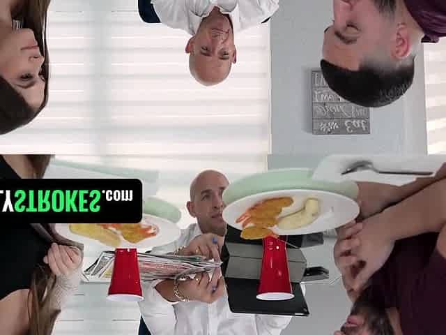 Stepmom Seduces Her Stepson While Stepsister Sucks Him Under The Table