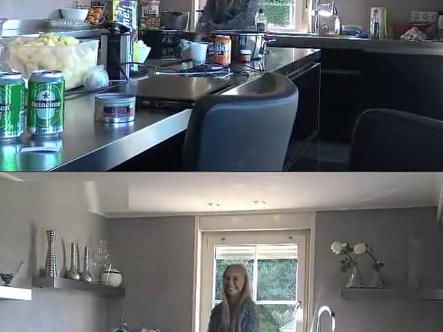 Teen Plays secretly with pussy under the table, gets Fucked in the kitchen