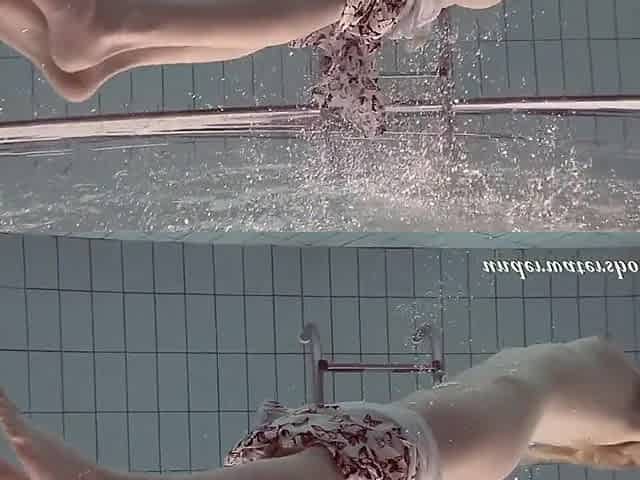 Natural boobs European lesbian swimming with her babe underwater
