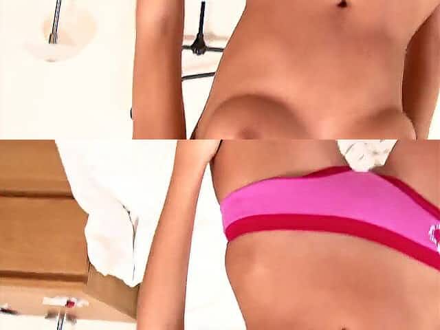 hot girl pulls down bikini to show pussy
