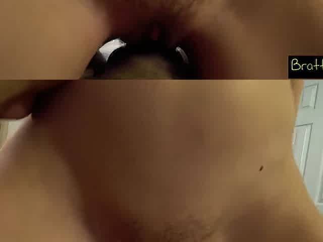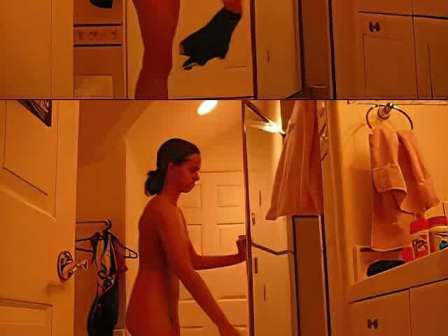 Youthful gal undressing in bathroom and exposing her slit