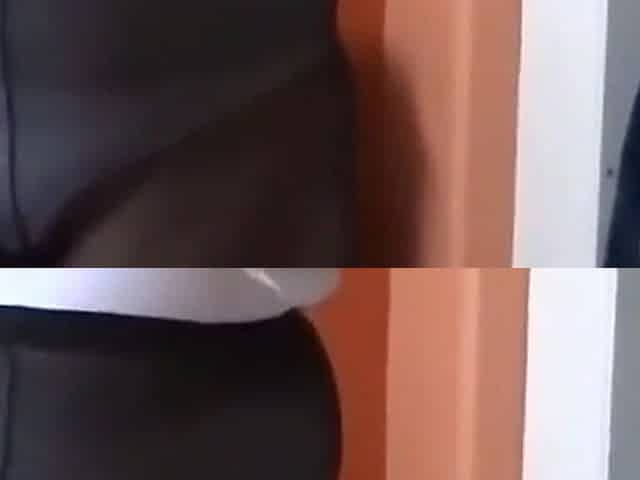 Petite beauty takes off her floury pants