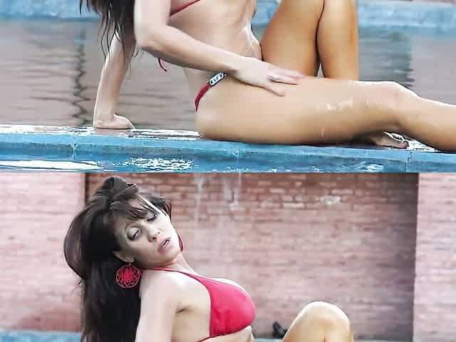 Kate Wolf grabs a bite to eat then masturbates poolside