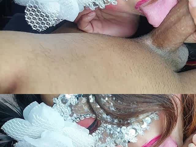 banging with her costume on so her spouse won't catch her cheating