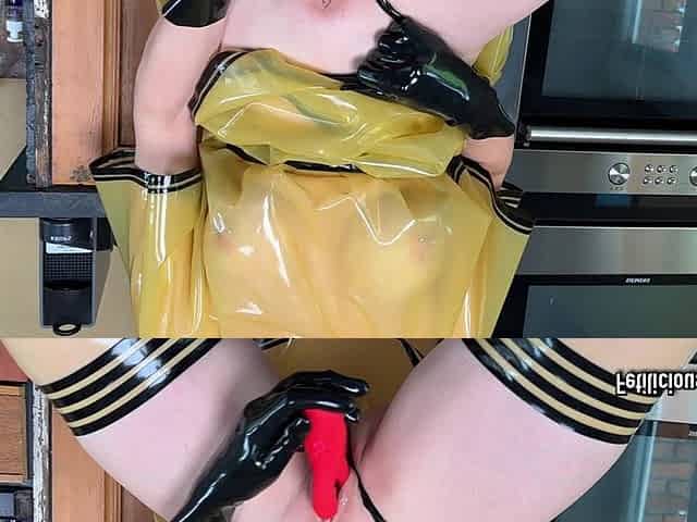 Latex Maid Masturbating at Work