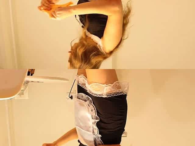 Short skirt, house cleaning