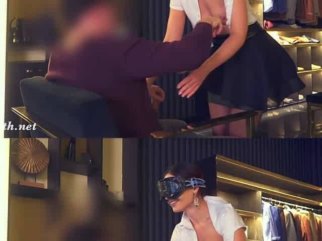 Close Friend. Jeny Smith teases a man in a clothing store