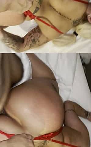 tattoo babe uses her leg to masutrbate