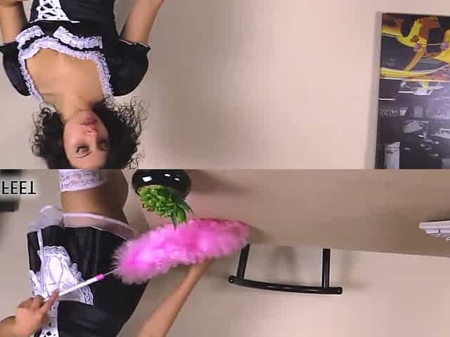 French maid Thessa foot teasing and upskirt in white stockings