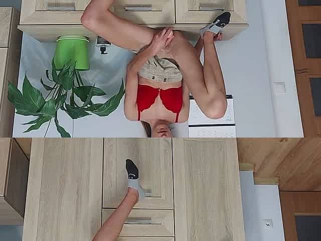 Housewife out of pants shows her cunt to the technical service and spies on her having hard sex
