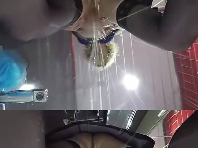 Upskirt and no panties in a famous shop