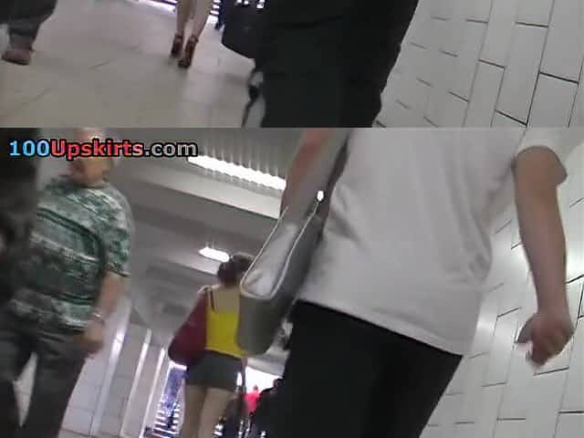 Upskirt of great ass at escalator
