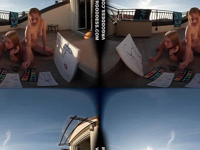 Kristina And Mira Painting Nude On Balcony During Vacation In Italy