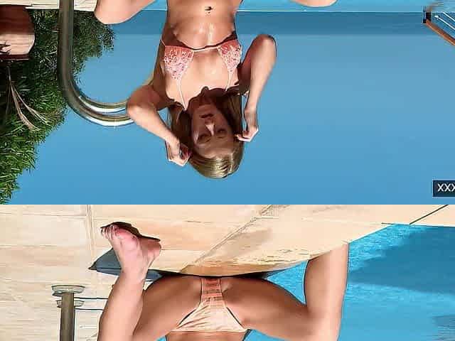 Sexy juicy masturbation of the Siren by the pool