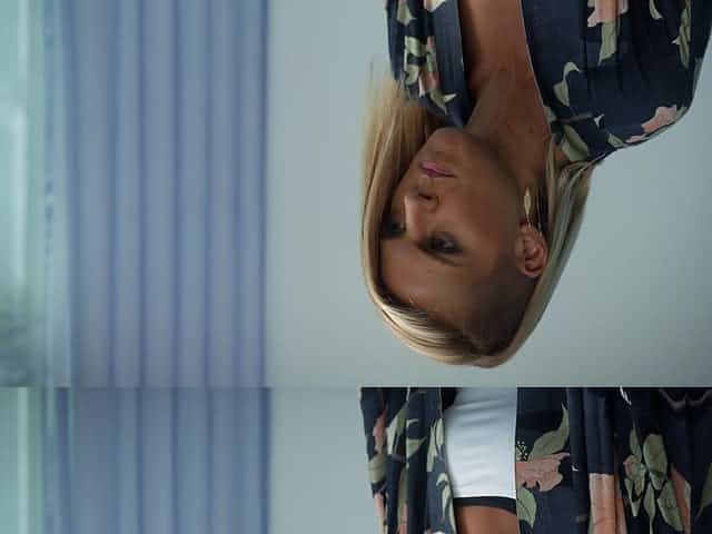 Slender Veronica rides huge cock stud reverse cowgirl on the sofa