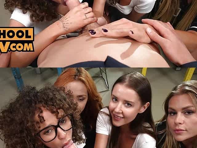 POV - Four hawt schoolgirls Sybil, Zlata Shine, Veronica Leal and Geisha Kyd sucking your ramrod
