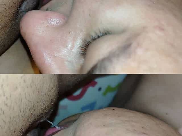 Slim girl pussy licked, hairy indian creampie, very close up blowjob