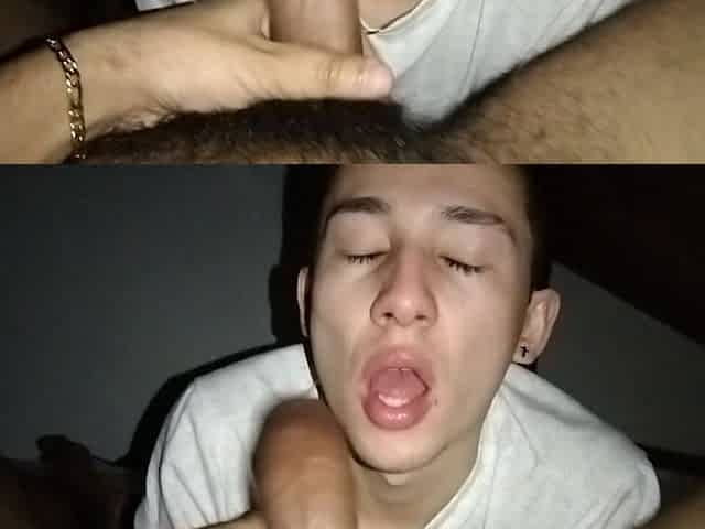 Blowjob Facial Twink Having His Big Cock Sucked By Until He Covers His Face In Thick Cum - Camilo Brown
