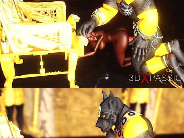 Anubis plays with a hot black girl in the temple in Ancient