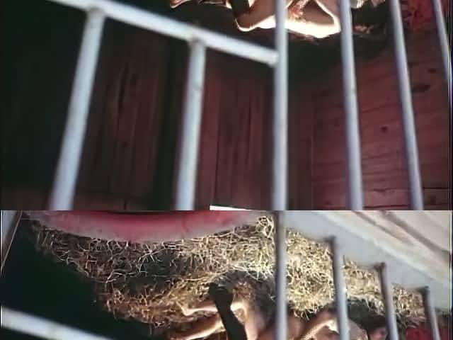 Kinky prisoners fuck three nude girls in a village shed