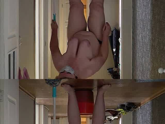 A aged, chunky mother i'd like to fuck with large, natural, saggy boobs is cleaning the apartment.