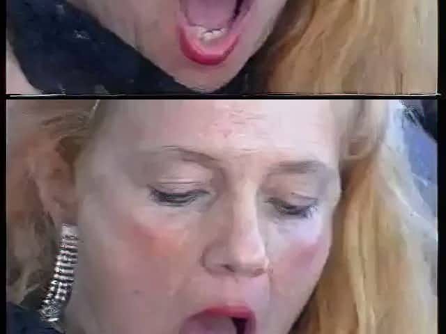 Blonde cougar treats her cute young lover to vintage lesbian experience