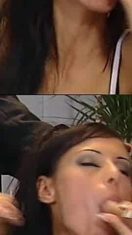 Double Penetration of Two Huge Cocks Cumming in Mouth of Beautiful Vintage MILF